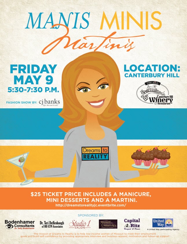 We have worked with the group several times in the past to support their fundraising and promotional efforts. This poster design is the second year we have helped to promote the growing event of Manis, Minis, and Martinis which raises money for DTR and gives participants a fun night out on the town.